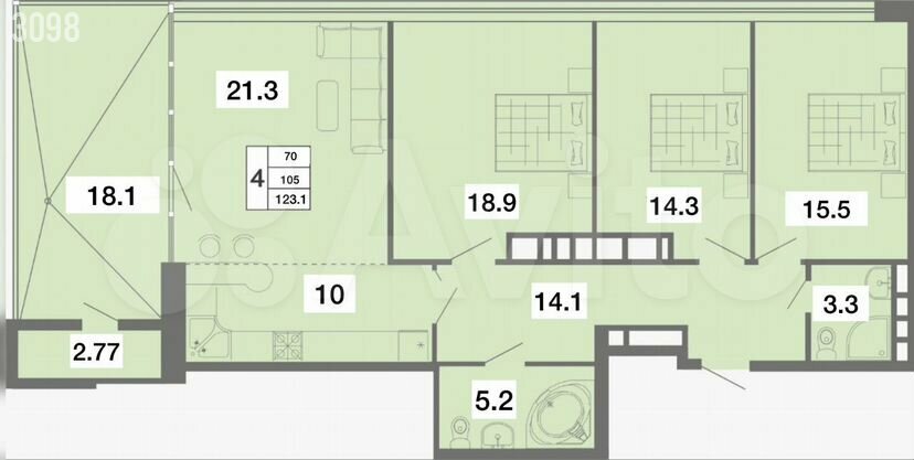 Общая площадь: 123,1 м²